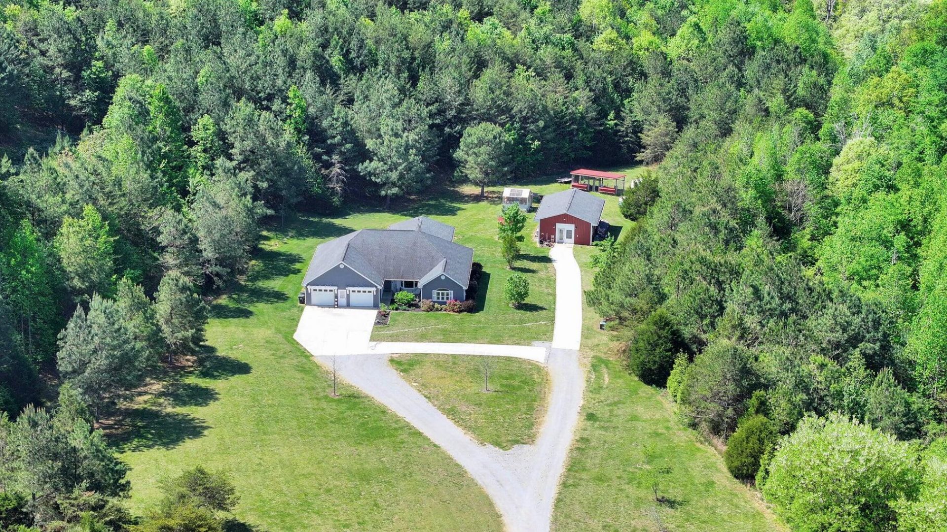 Charming Ranch Home with studio on 8.73 Acres! This beautifully crafted 3-bedroom, 2-bathroom ranch-style home built in 2018, offers an idyllic country retreat not far from the conveniences of town. This stunning property boasts gorgeous curb appeal and sits on a generous 8.73 acres, perfect for both relaxation and outdoor activities.Step inside to discover a spacious living room with vaulted ceilings that seamlessly flows into a dining area and an inviting kitchen. The kitchen features elegant granite countertops and modern stainless steel appliances, making it a delightful space for meal prep and entertaining. Enjoy your morning coffee in the charming breakfast nook, highlighted by bay windows that overlook the picturesque front yard. Retreat to the primary suite, where tray ceilings add a touch of sophistication. The en-suite bathroom is a true oasis, featuring a walk-in tiled shower, dual walk-in closets, and a double vanity that leads directly to the convenient laundry room. The thoughtful layout includes two additional guest bedrooms and a guest bath, ensuring comfort and privacy for family and visitors. For those seeking a unique workspace or hobby area, there's a hair salon studio conveniently located in the garage, perfect for beauty professionals or those wanting a dedicated creative space. The outdoor amenities are equally impressive, featuring a large covered deck that overlooks the backyard, making it an ideal spot for gatherings or simply enjoying the serene surroundings. Additional highlights include a detached building with a 1-bedroom, 1-bath studio that comes equipped with stainless steel appliances, providing options for guest lodging or rental income. The property also features a garage/workshop, a greenhouse, and a charming chicken coop--all set amidst fruitful trees including blueberry, peach, pear, and apple. Don't miss this opportunity to own a slice of paradise in Decatur, TN.